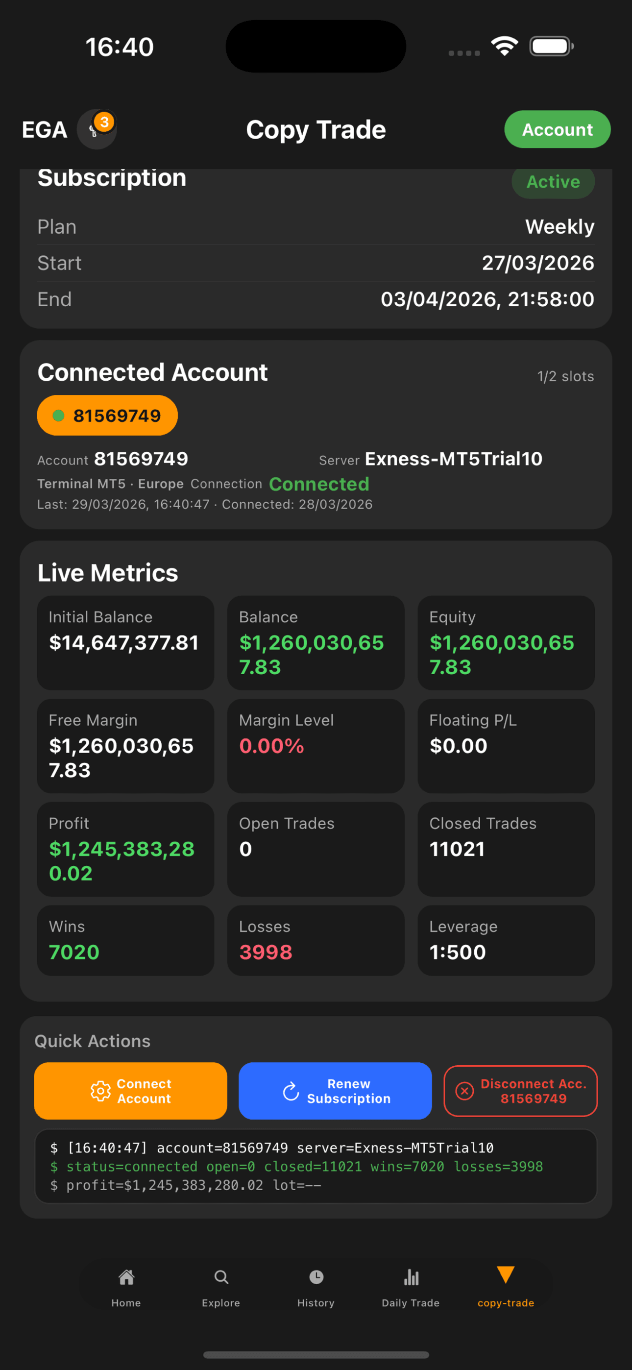 More than 4,000 servers run around the clock to keep copy trade execution active for connected accounts.