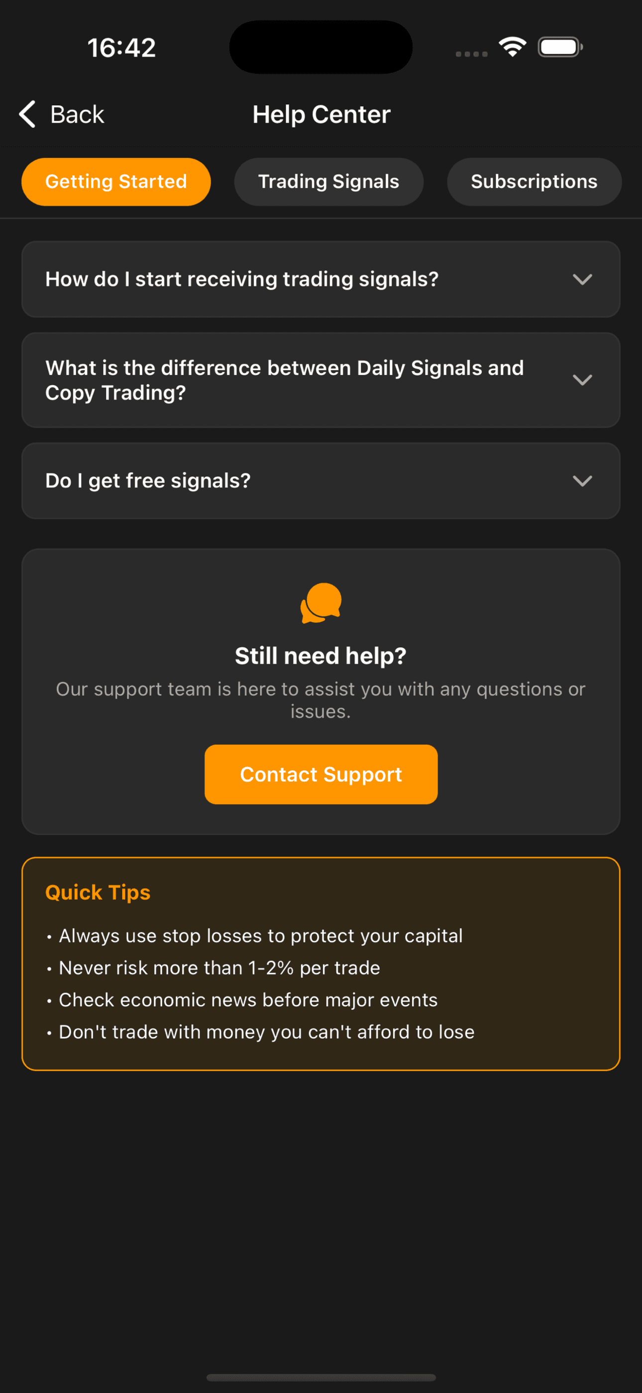 Copy trading is the main offer now, but the platform still works for users who want signals and learning too.